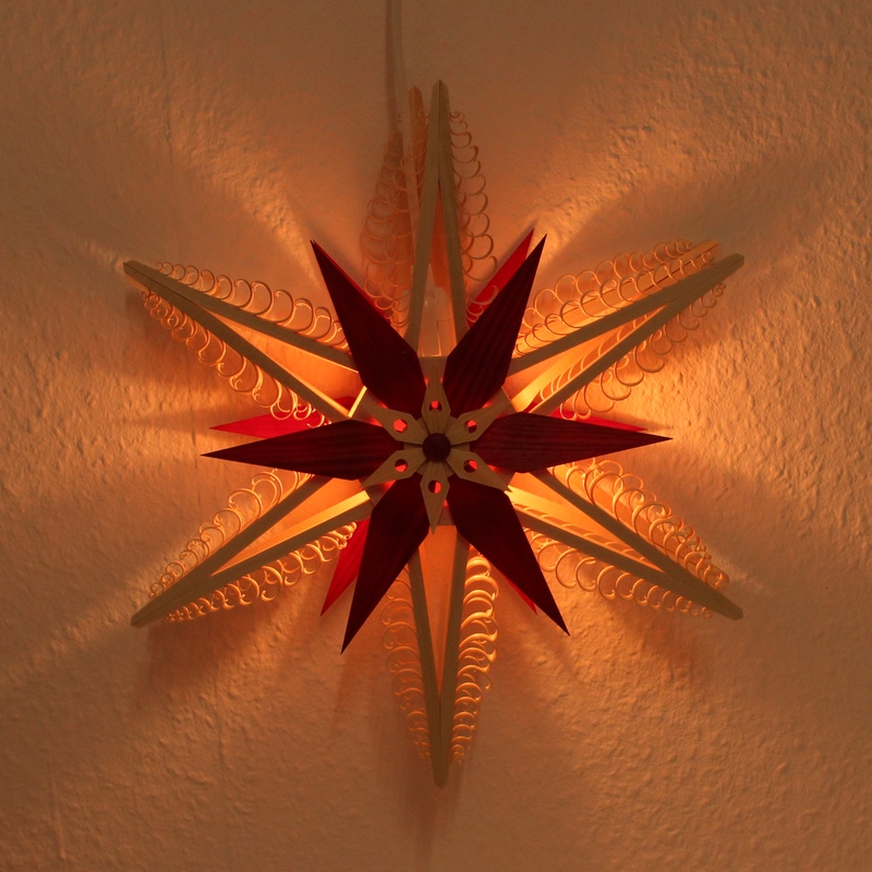 Weiterführende Links zu "Erzgebirgischer Holz-Spanstern 238R doppelt natur-rot, 34 cm Baum-und Fensterschmuck Rudolph"