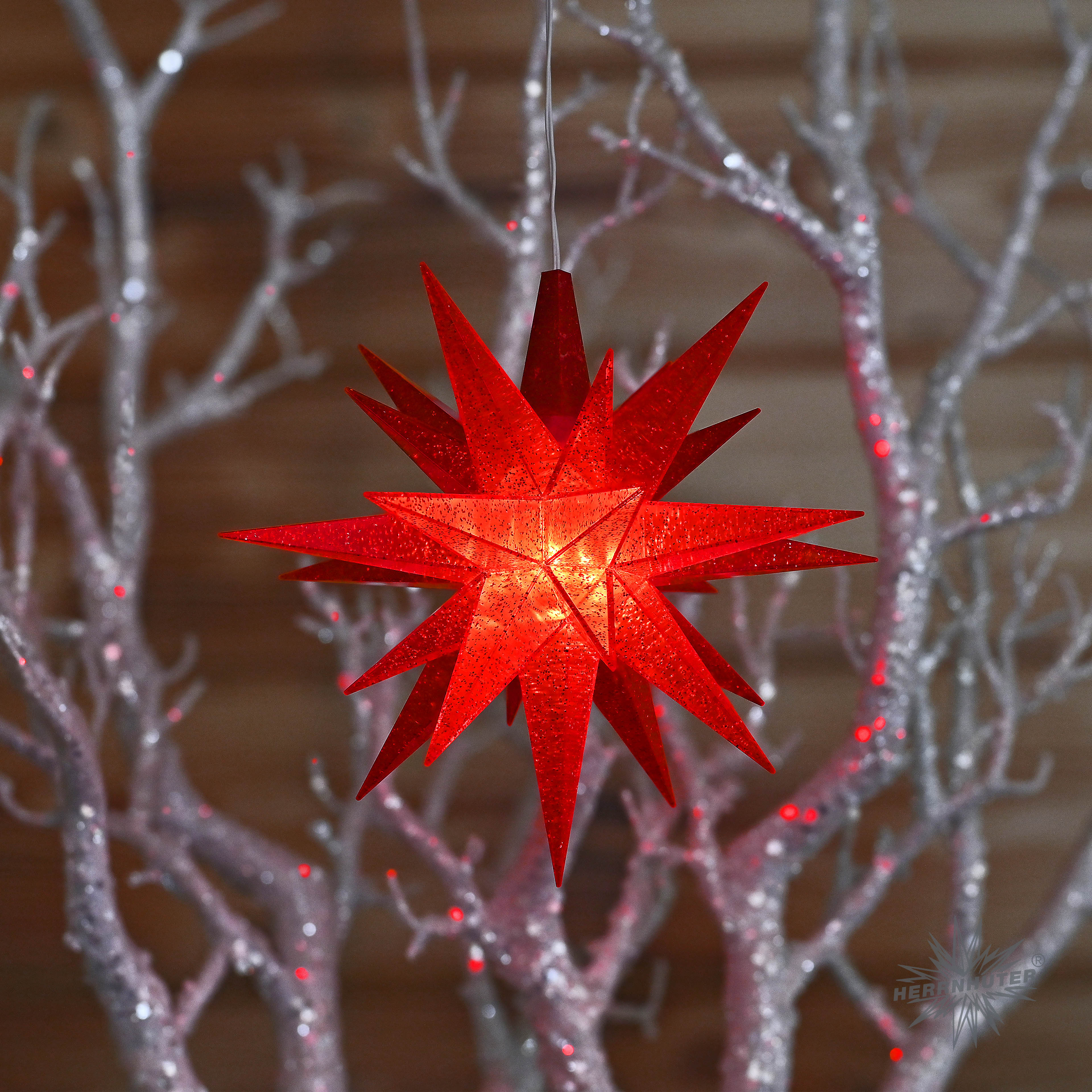 Weiterführende Links zu "Herrnhuter Adventsstern Komplettset 1 Stück A1E Farbe rot-glitter mit Netzgerät 500 mA"