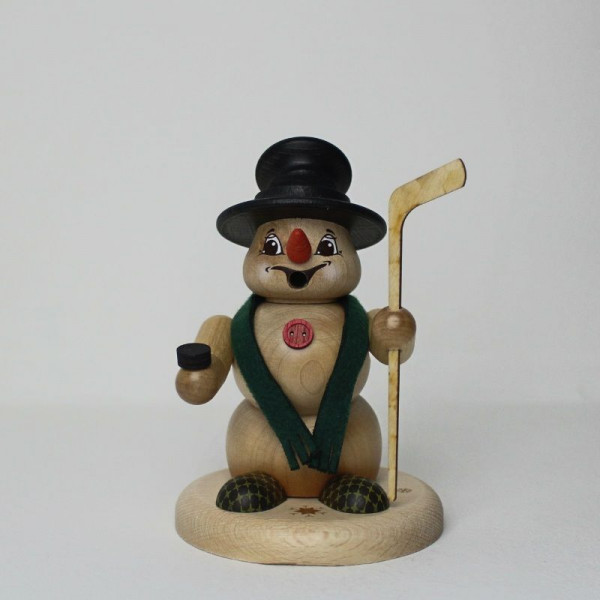 Schneemann Sigi klein Eishockey als Räuchermann natur Hergestellt im Erzgebirge by Kuhnert